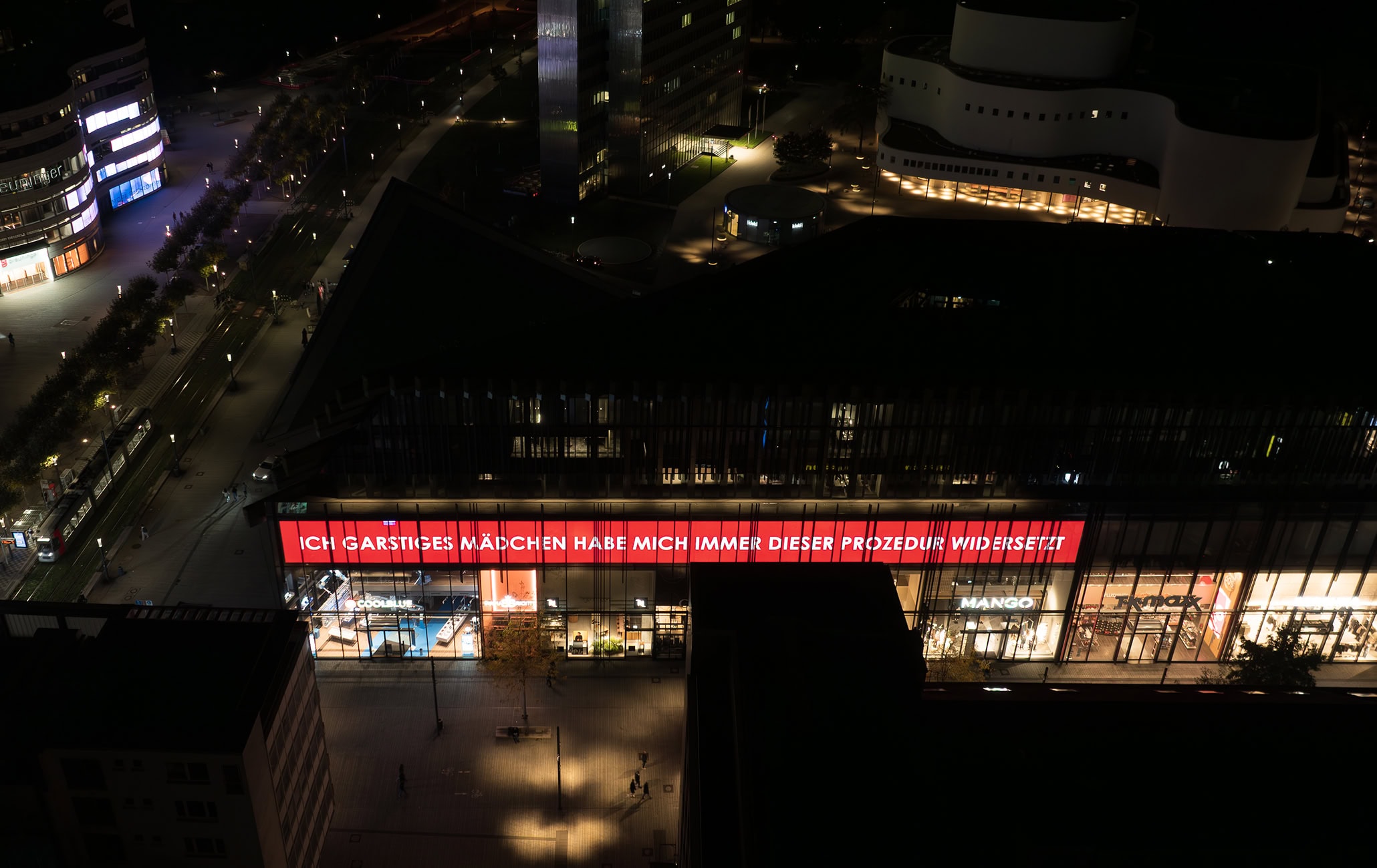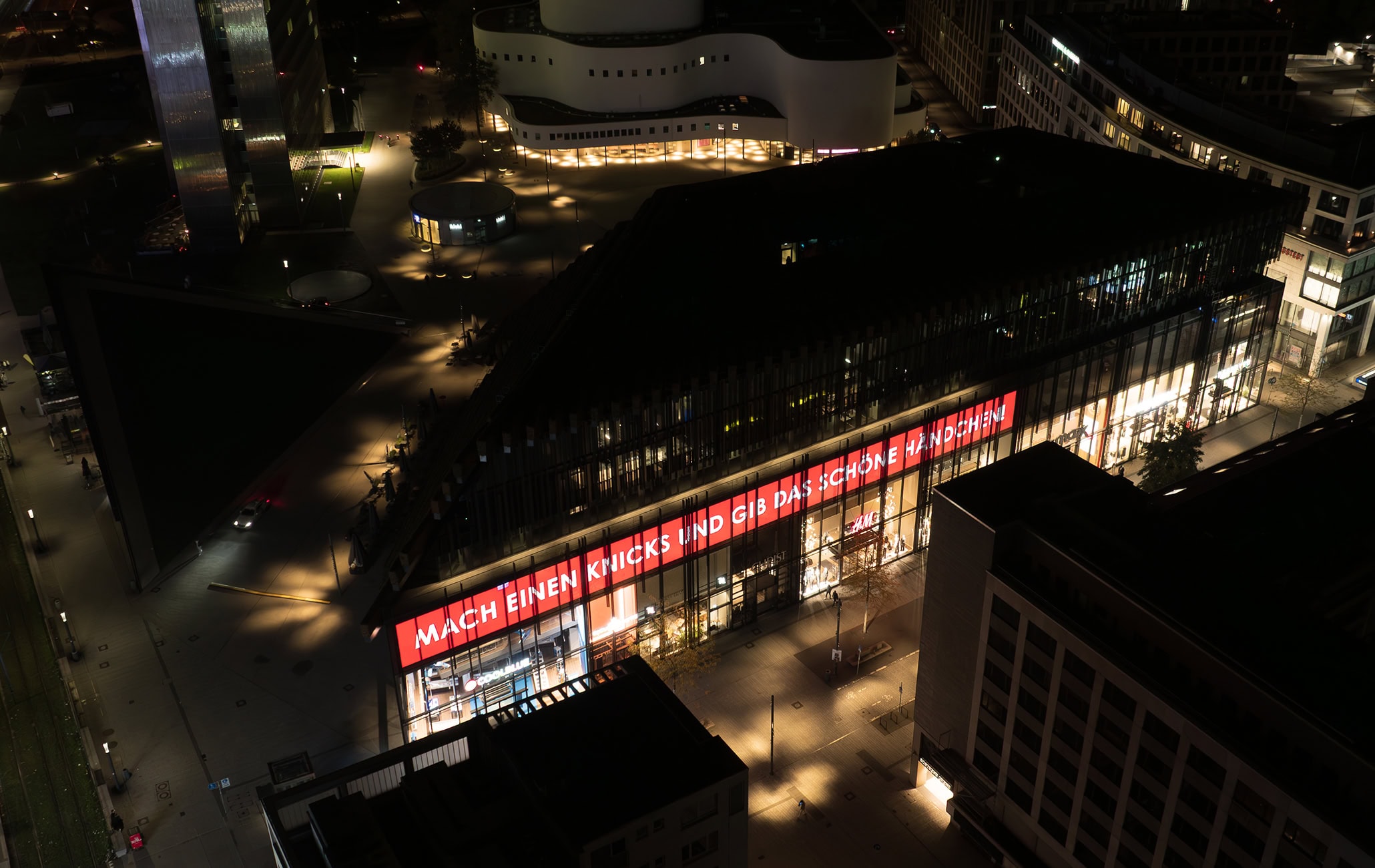 Die Düsseldorf Marketing GmbH zeigt seit 2024 jeden Abend 20-23 Uhr ein Videokunstwerk auf dem großen LED-Band an der Schadowstraße, das tagsüber für Werbung genutzt wird. Die Videokunstwerke wechseln monatlich. Kuratorin: Ljiljana Radlovic.