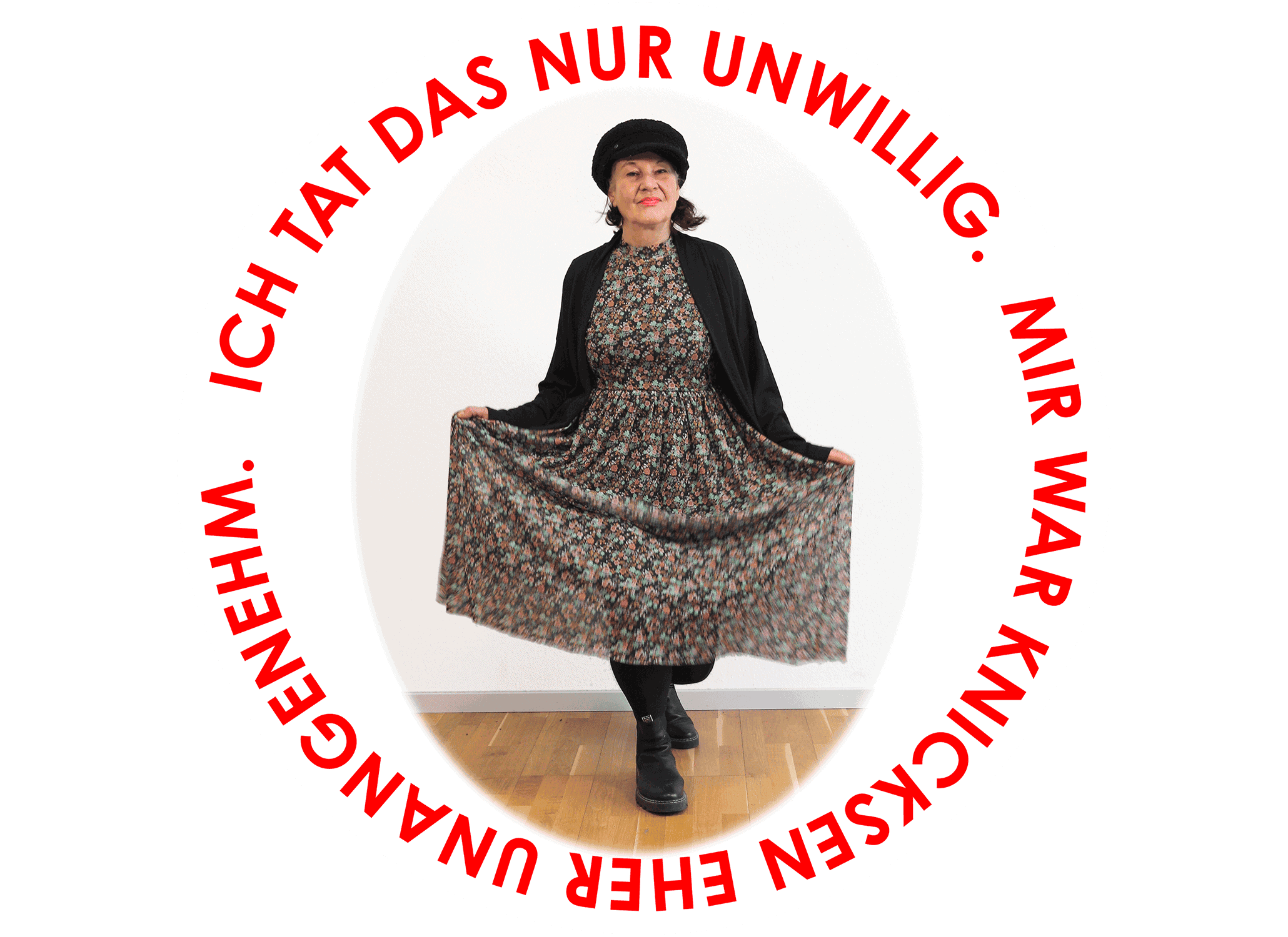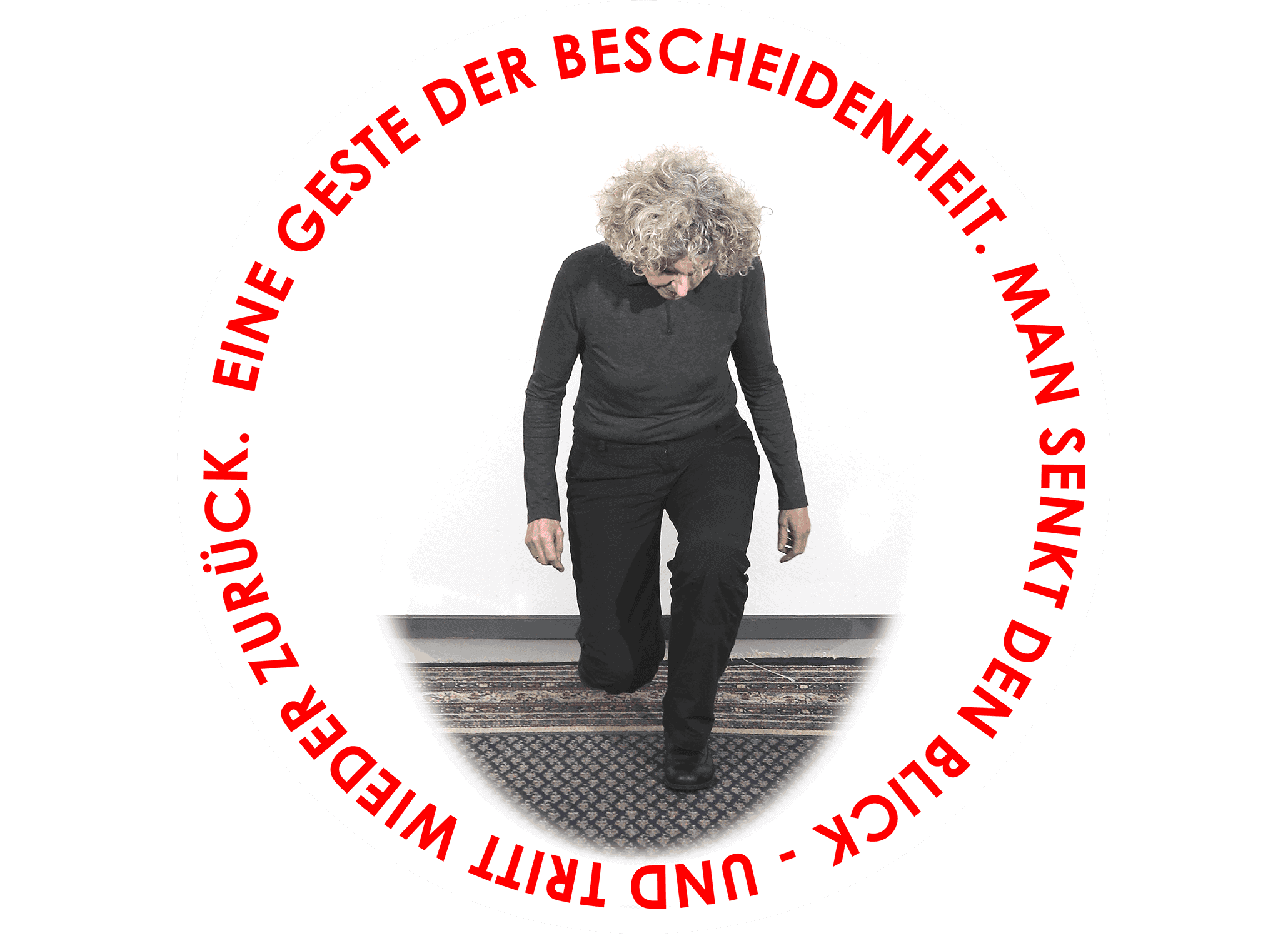 Bis in die 1970er Jahre mussten in Deutschland Mädchen knicksen und Jungen einen Diener machen; manche selten und nebenher, andere Kinder unter strenger Beobachtung und vor allen Erwachsenen. Besonders für Mädchen war dies oft demütigend. In dieser Serie aus runden Bildern knicksen Frauen in Erinnerung an ihre Kindheit. Die Texte zitieren einige ihrer Kommentare zum Knicksen. Die Gestaltung der Bilder erinnert an Verkehrsschilder, die Gebote und Regeln aufstellen.